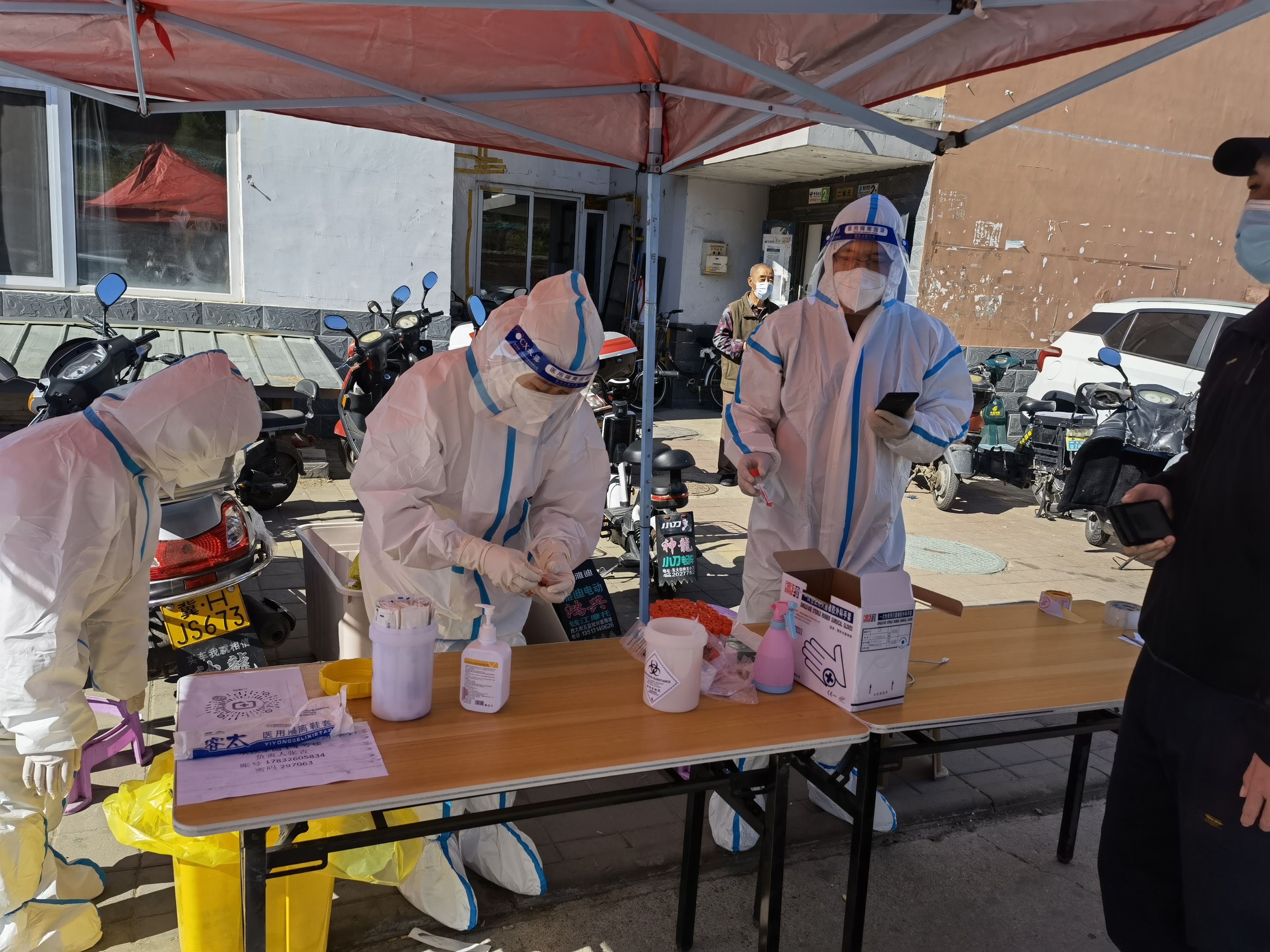 “作為一名老黨員,關(guān)鍵時(shí)刻必須要頂上來(lái)!”53歲的國(guó)控集團(tuán)監(jiān)事會(huì)主席唐春民作為新手“大白”,不僅為要做好維護(hù)核酸檢測(cè)現(xiàn)場(chǎng)秩序、搬運(yùn)防疫物資、信息錄入等工作,還要負(fù)責(zé)管理、照顧好各位隊(duì)員,為隊(duì)員們的安全操心?!八麄兪俏?guī)С鰜?lái)的,一定要安全的帶回去”。