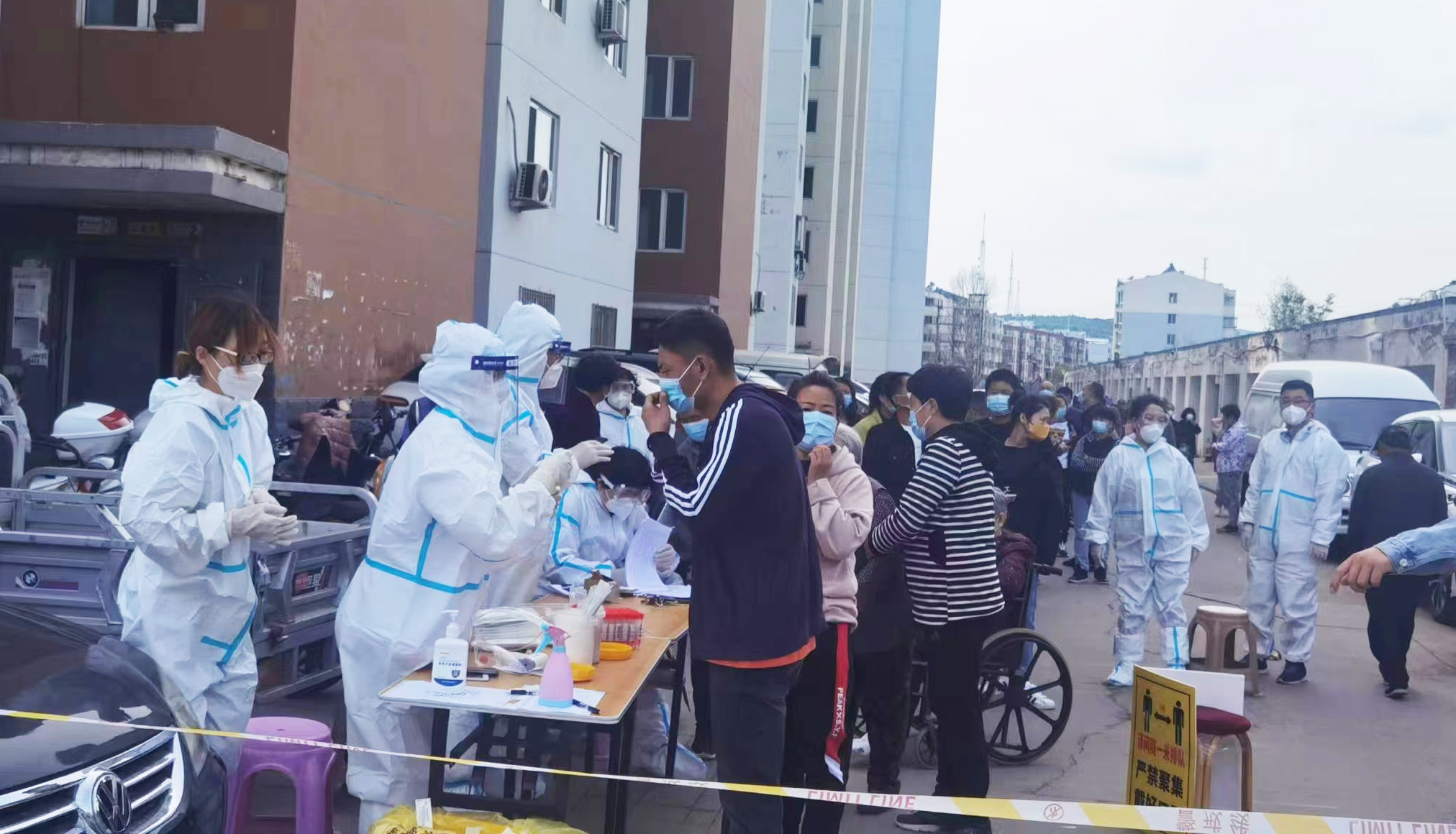 “‘白加黑’干出‘加速度’”。5月11日,下沉干部按照安排部署,迅速行動(dòng),按照社區(qū)安排,分成3組,分區(qū)域?qū)Τ需F家園、御龍頤景小區(qū)進(jìn)行全員核酸檢測(cè)。由于社區(qū)屬于老舊小區(qū),流動(dòng)人口較多,信息統(tǒng)計(jì)不完全,核酸檢測(cè)白天時(shí)間難以完成,考慮到核酸檢測(cè)每滯后一分鐘就會(huì)多一分風(fēng)險(xiǎn),隊(duì)員主動(dòng)擔(dān)當(dāng),發(fā)揮出黨員先鋒模范和示范引領(lǐng)作用,持續(xù)排查到晚上12點(diǎn)多,全部完成2個(gè)小區(qū)3個(gè)點(diǎn)位2200余人的核酸檢測(cè)。同時(shí),由于社區(qū)老人較多,無(wú)法親自到核酸檢測(cè)點(diǎn)進(jìn)行核酸檢測(cè),李大林等隊(duì)員為了確保做到全員核酸檢測(cè),克服小區(qū)電梯無(wú)法使用的困難,一戶一戶的爬樓梯入戶檢測(cè),直到凌晨2點(diǎn),才拖著疲憊的身軀返回駐地。