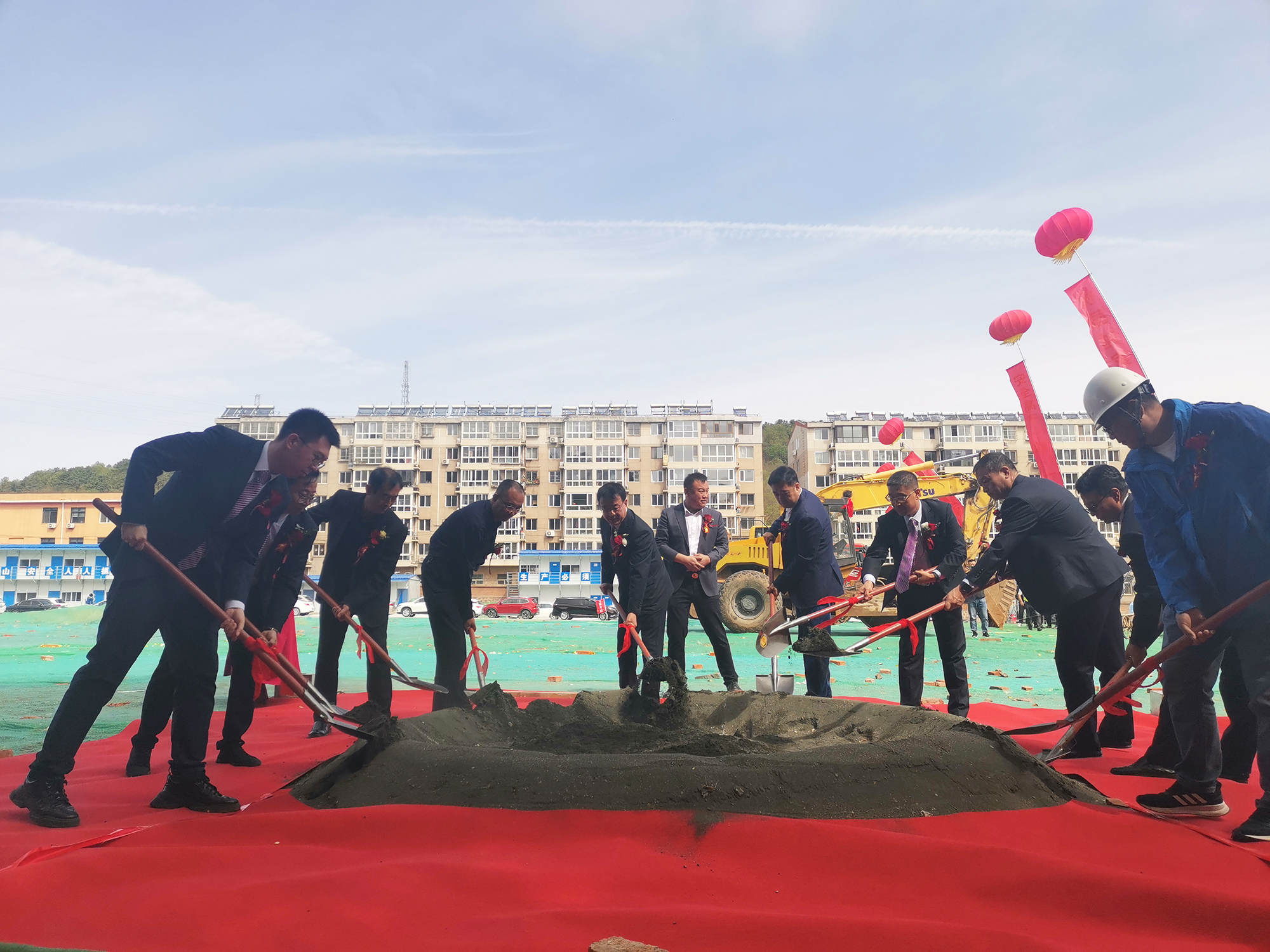 9:40分,承德國(guó)控集團(tuán)黨委書記、董事長(zhǎng)張建軍為祥獅點(diǎn)睛,伴著鼓聲開始舞動(dòng),送上祥瑞和祝福,祝國(guó)越家園項(xiàng)目開工大吉。隨后領(lǐng)導(dǎo)們共擎金鍬,揚(yáng)土培基,現(xiàn)場(chǎng)工程器械全面開工作業(yè),儀式圓滿閉幕。