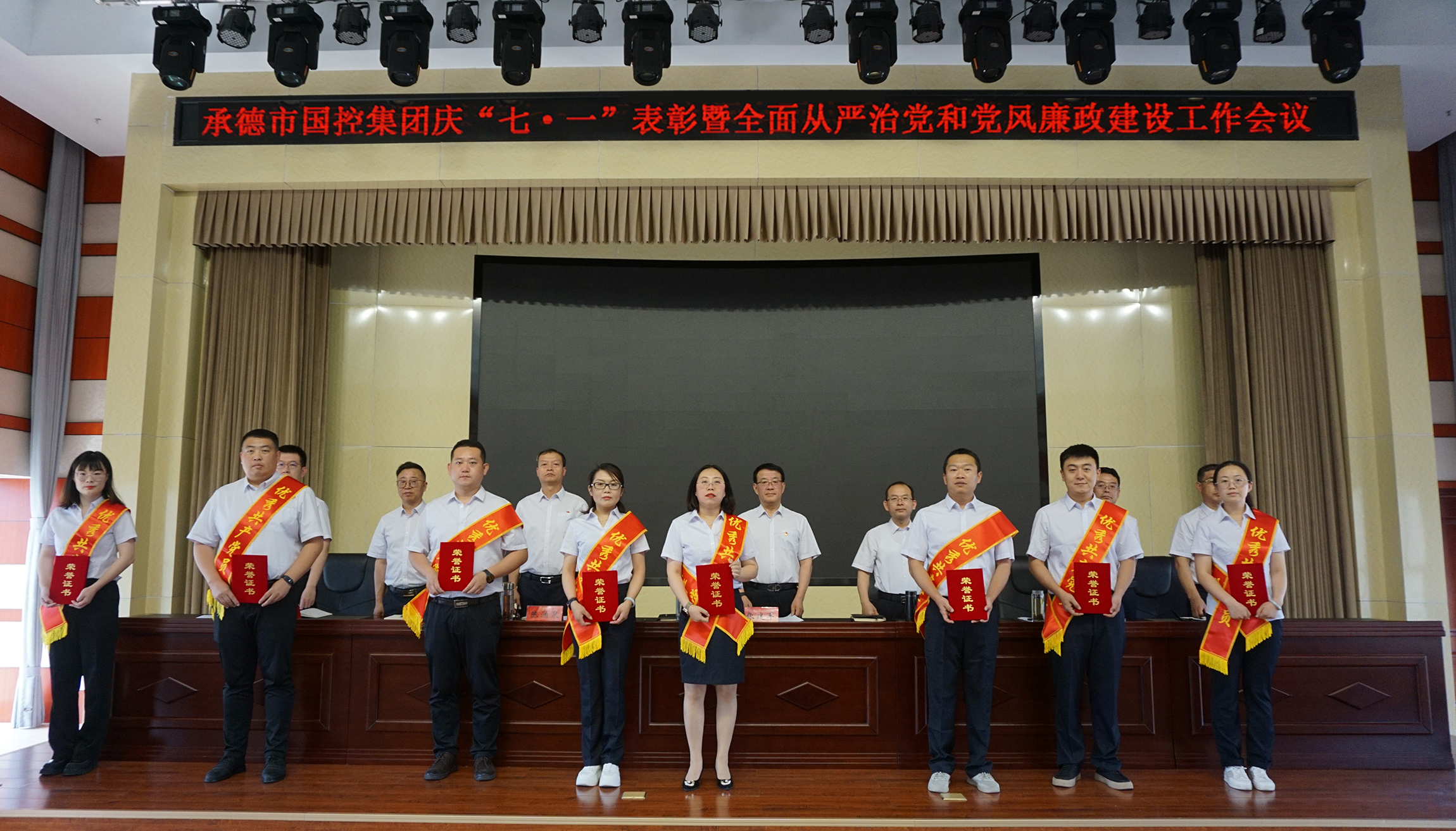 表彰大會(huì)氣氛隆重?zé)崃?,大?huì)在全場(chǎng)起立高唱國(guó)歌聲中開(kāi)幕。黨委委員、副總經(jīng)理焦俊良宣讀了《關(guān)于表彰集團(tuán)公司2023年度優(yōu)秀共產(chǎn)黨員和優(yōu)秀黨務(wù)工作者的決定》,與會(huì)領(lǐng)導(dǎo)向受到表彰的優(yōu)秀黨員和優(yōu)秀黨務(wù)工作者頒發(fā)了榮譽(yù)證書。